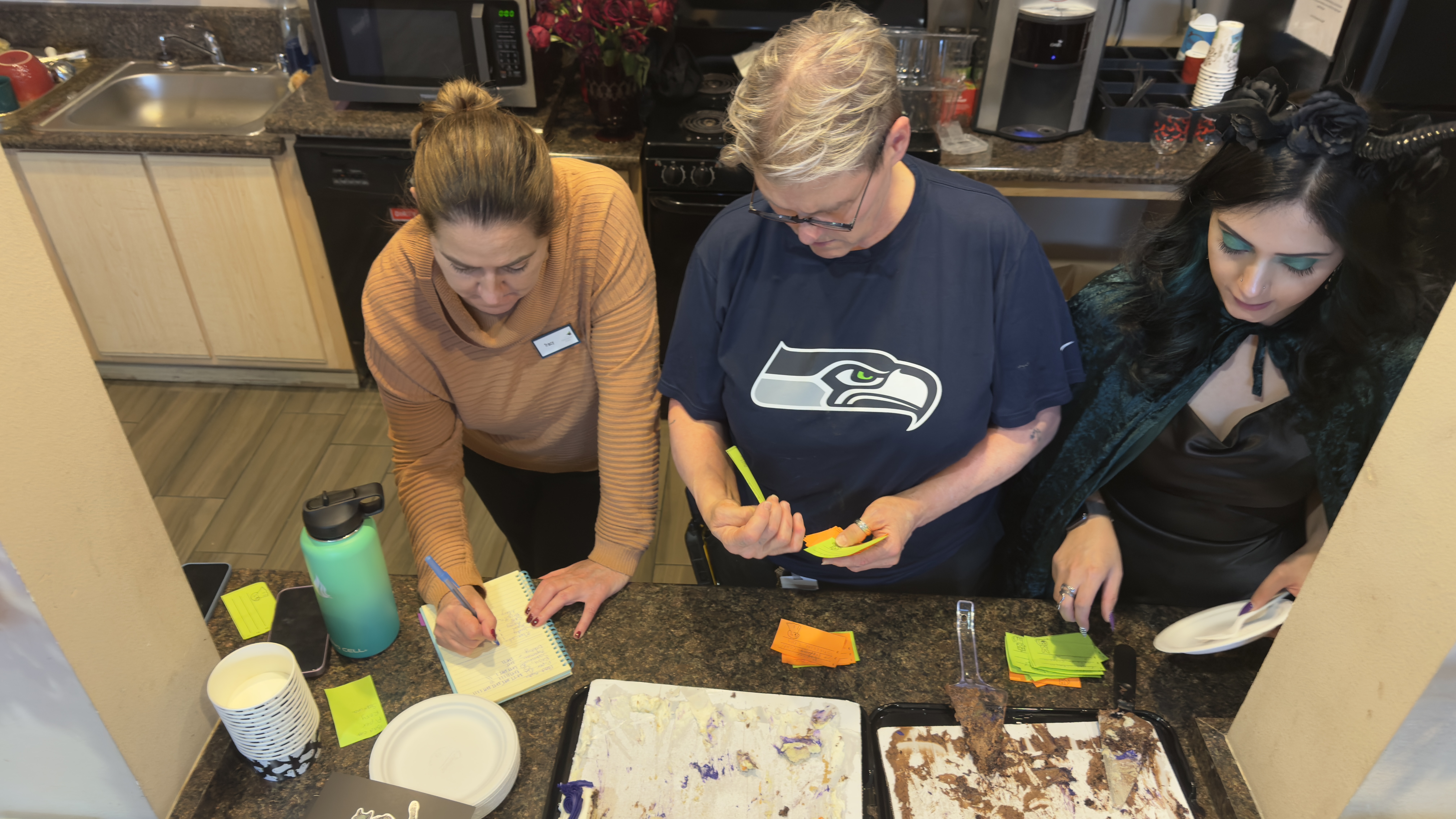 Among the human contestants, Judy’s elaborate green-faced witch costume earned her the top prize. She joined a table of fellow witches and Halloween enthusiasts, smiling as friends applauded the winners. The event closed with staff and volunteers counting votes and cleaning up the last crumbs of cake, a sweet ending to a celebration that brought warmth and community spirit to a blustery October afternoon.